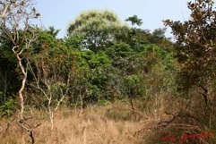 Dans ces endroits, ou l'herbe est parsemée d'arbustes, on assiste à une progression de la forêt au détriment des zones herbeuses. On le voit sur la photo de droite on aperçoit une zone d'espèces qui grandissent en lisière de la forêt, genre Pentacletra par exemple, et qui, petit à petit, progressent.